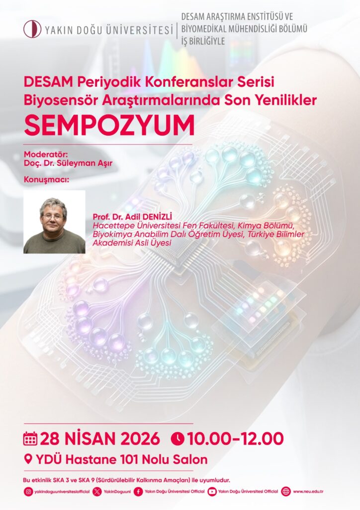 Fakültemiz Biyomedikal Mühendisliği Bölümü ve DESAM Araştırma Enstitüsü iş birliğiyle, “DESAM Periyodik Konferanslar Serisi” kapsamında biyosensör teknolojilerindeki güncel gelişmelerin ele alınacağı bir sempozyum düzenlenecektir.