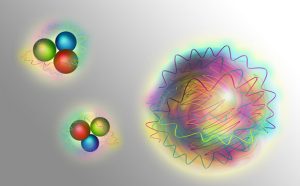 Nükleonlar (solda) kuarklardan (madde parçacıkları) ve gluonlardan (kuvvet parçacıkları) oluşur. Bir glueball (sağda) tamamen gluonlardan oluşur.